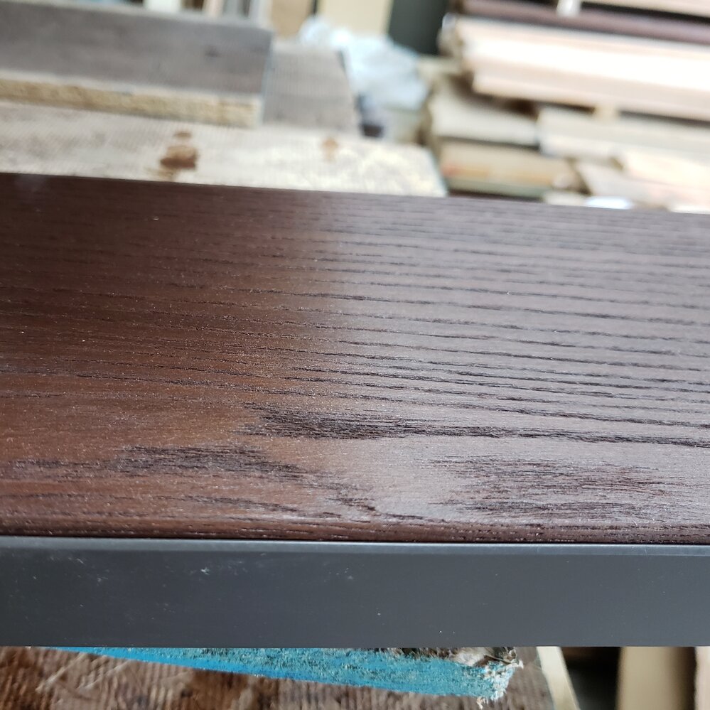 Barre de départ en métal peint pour terrasse en bois torréfié.
