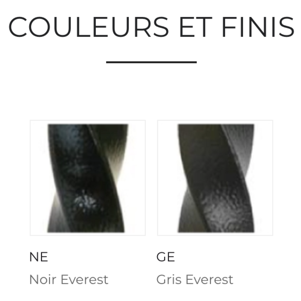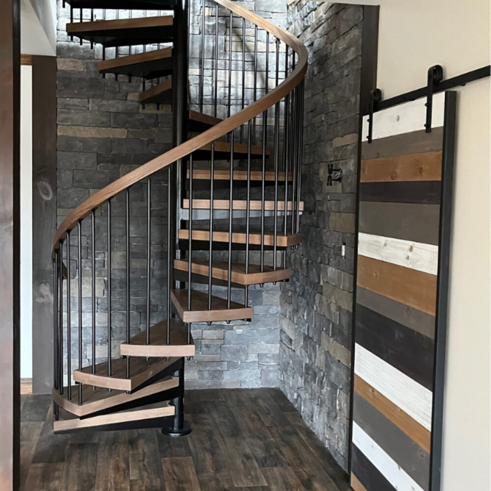 Escalier en colimaçon en métal*. Inclus les barreaux et main courante. Livré en pièces détachées pour une installation facile. Il faut ajouter un palier (inclus barreaux, main courante et poteau) dans le haut de l'escalier.