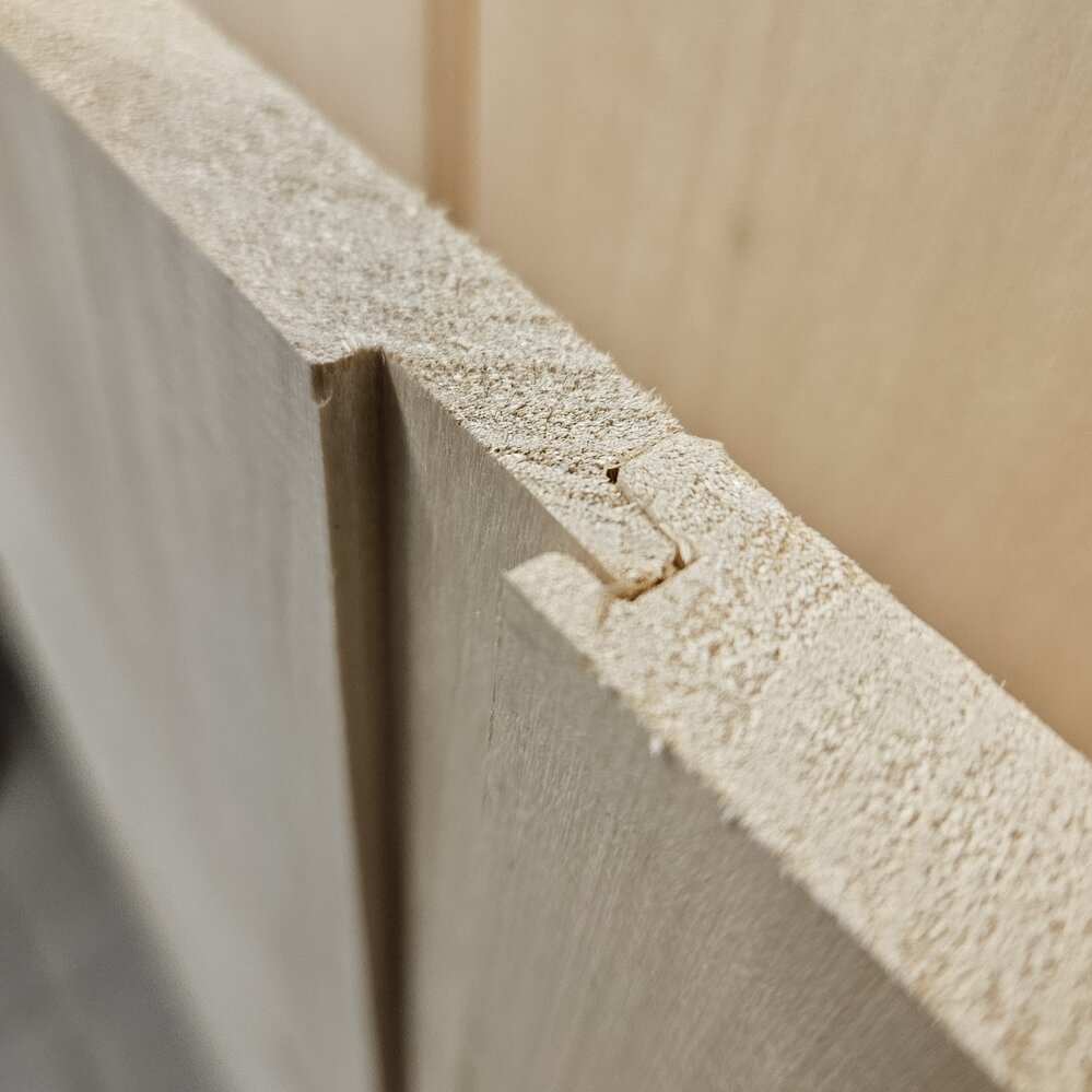 Shiplap en tremble avec fini brut ou plané. L'embouvetage permet une installation sans clou apparent, contrairement au shiplap traditionnel qui nécessite un clouage sur la face de la planche.